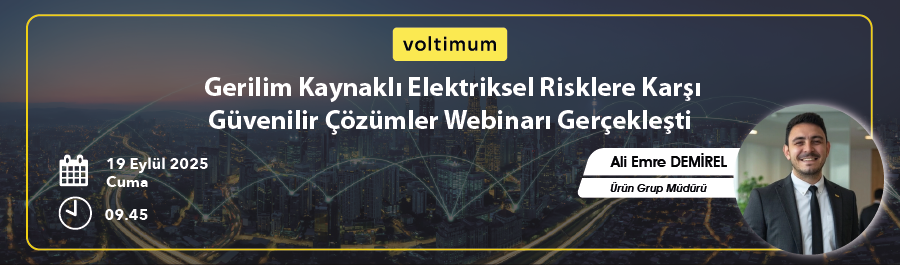 19 Eylül 2025, Cuma günü ENTES ve Voltimum iş birliğiyle gerçekleştirilen “Gerilim Kaynaklı Elektriksel Risklere Karşı Güvenilir Çözümler” konulu canlı webinar başarıyla tamamlandı.